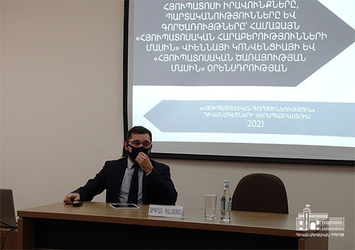 On February 15th, the Diplomatic School launched its annual “Consular training” programme. The lectures are delivered by respective officials from the Ministry of Foreign Affairs and other related government agencies. The training is specifically designed for diplomats and lasts one month. Welcoming remarks at the start of the training were delivered by the Director of the Diplomatic School, Ambassador Vahe Gabrielyan. The first session of the course was “The rights, duties, and activities of Consuls according to the Vienna Convention on Consular Relations and “Law on Consular Service” of the Republic of Armenia”, and was presented by the acting Head of Department in charge of Treaties and International Law of the MFA, Mr. Tigran Galstyan.