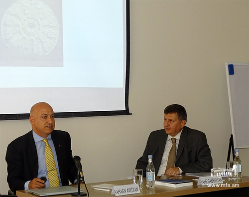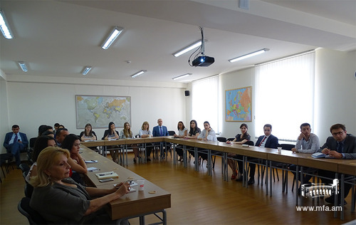 On June 19th, Vahagn Avedian (Sweden), a historian, specializing in research concerning the fields of genocide, human rights, peace and conflict and democracy delivered a lecture entitled "The Politics of Memory of the Armenian Genocide" for the diplomats of the Ministry of Foreign Affairs of Armenia. The lecturer spoke about the memory formation and its role, the differences of formation of historical memory in states where genocides have occurred and particularly about the developments after the Armenian Genocide in the Ottoman Empire․ V. Avedian is the author of the book "The Politics of Memory of the Armenian Genocide" published in 2017 and 2018, as well as the co-founder and editor of Armenica.org and other websites.